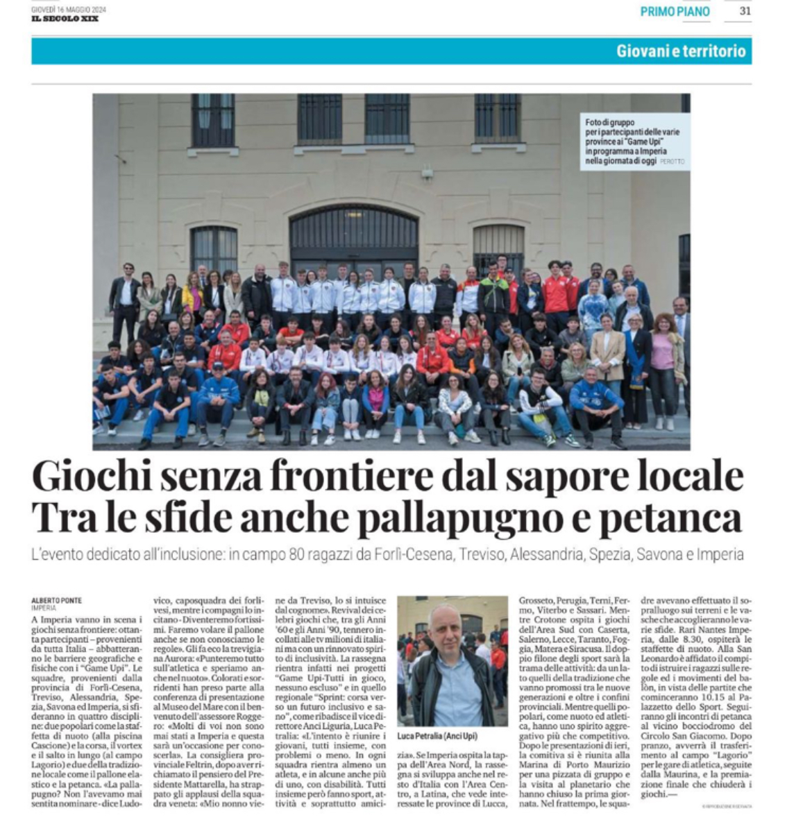 Con grande orgoglio vi informiamo che sono in corso ad Imperia i Giochi Interprovinciali dell’Inclusione, evento del programma GAME UPI che sta coinvolgendo centinaia di ragazze e ragazzi in attività sportive e di educazione ad un sano stile di vita.