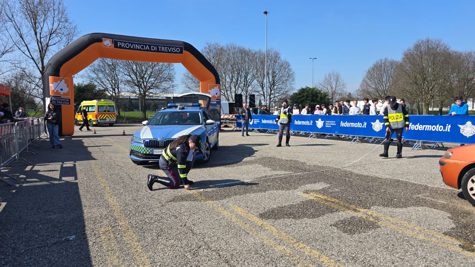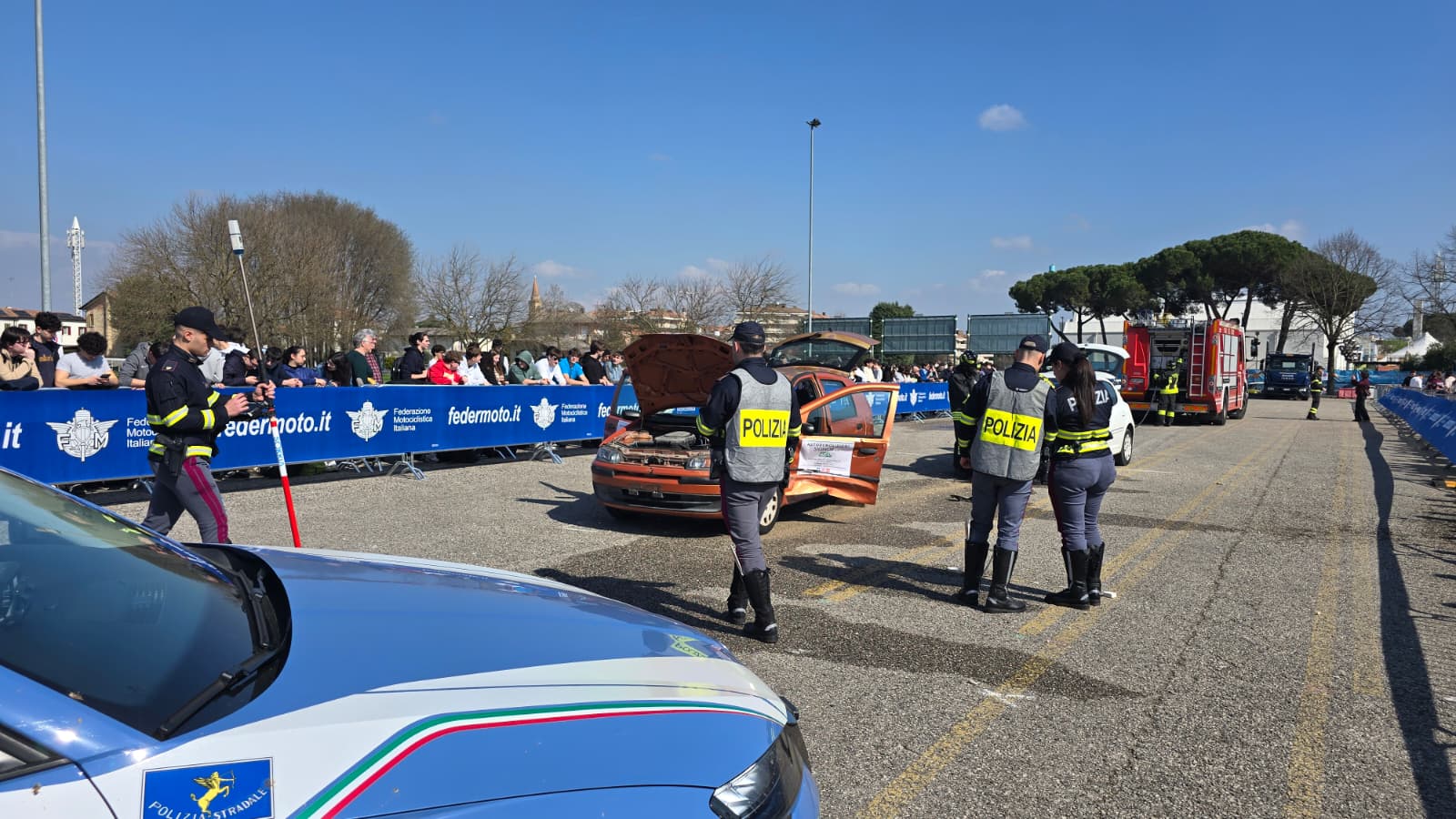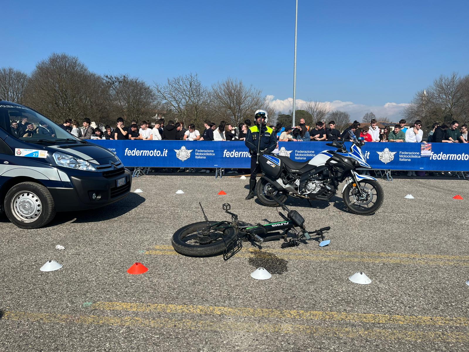 Oggi, con il Drive Camp, si completa dunque un percorso articolato, che arriva alla “pratica” con una lezione all’aperto e crash test dedicati: grazie al coordinamento del Settore Viabilità della Provincia di Treviso e del prof. Marino Biscaro, della Federazione Motociclistica Italiana, sono state dimostrate dinamiche reali di incidente e spiegate agli oltre 600 studenti presenti, le corrette manovre da effettuare in caso di emergenza, con l’intervento di Polizia Stradale, Carabinieri, Vigili del Fuoco, Polizia Locale di Treviso e del SUEM 118 Treviso Emergenza.