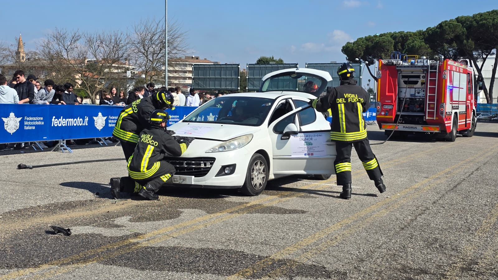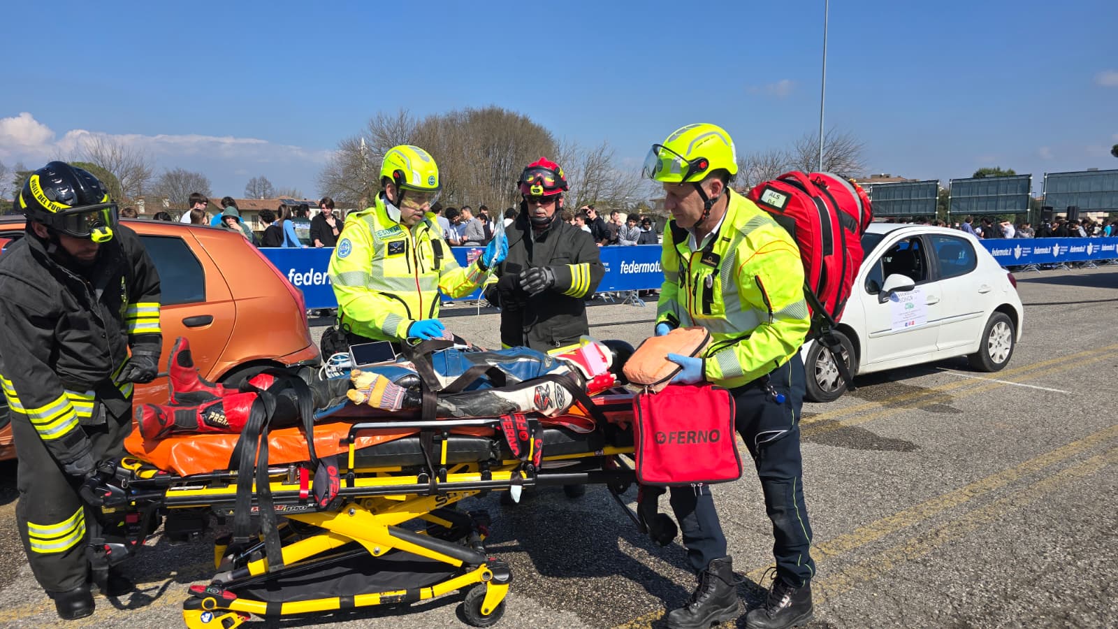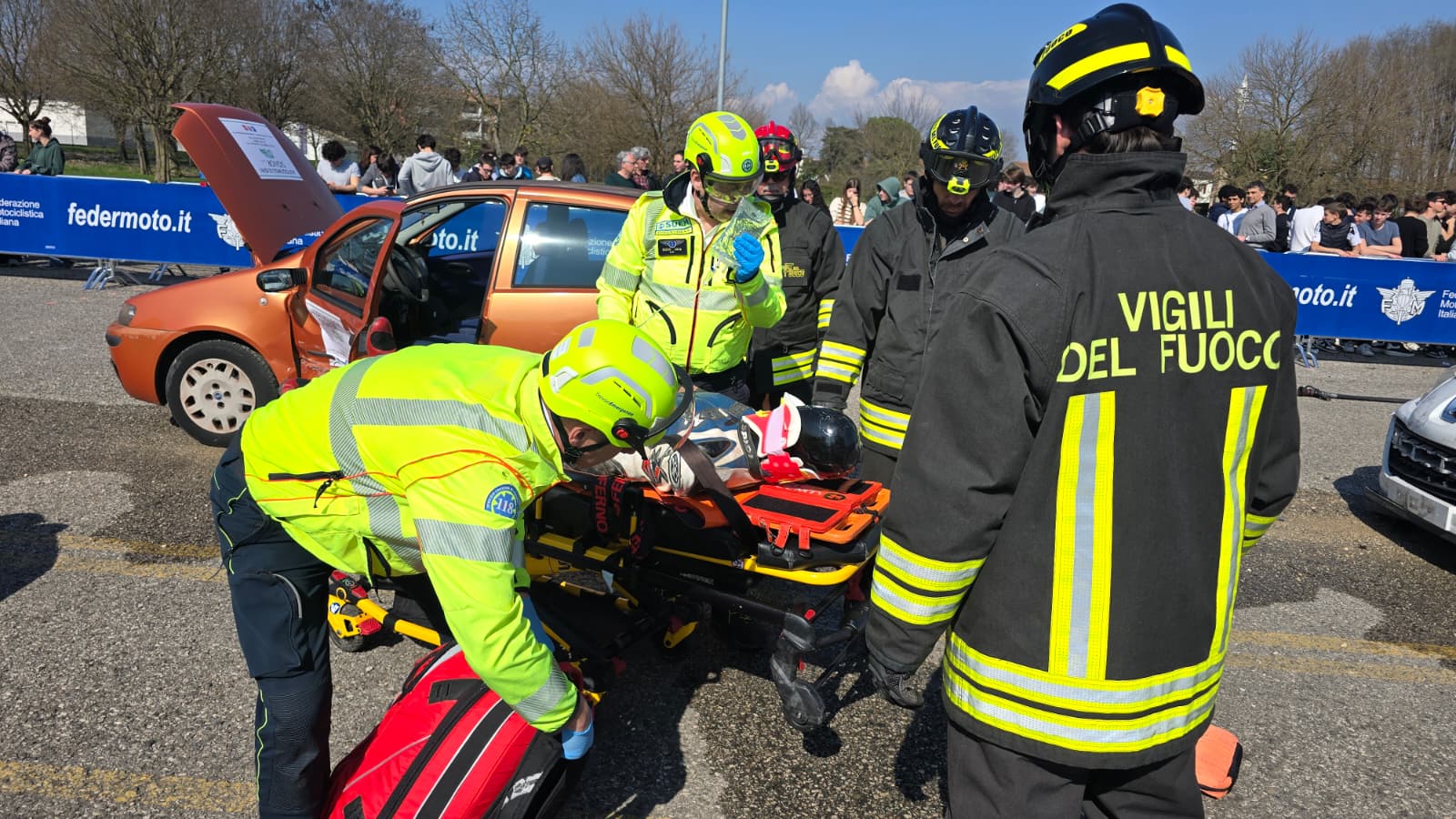 A dare il via ufficiale all’evento i saluti istituzionali di Marco Donadel, presidente della Provincia di Treviso, Alessandro Manera, vicesindaco del Comune di Treviso, Giancarlo Bizzarri, direttore generale dell’Ulss2 Marca Trevigiana, Gianluca Da Rold, viceprefetto di Treviso. Presente anche il vicepresidente della Provincia Roberto Fava. A portare una significativa e toccante testimonianza a tutte le studentesse e gli studenti presenti, le mamme di Jessica e Davide, che hanno tragicamente perso la vita a causa di terribili incidenti stradali verificatisi nel territorio. A coordinare le simulazioni, il formatore incaricato dal progetto SOS Guida Sicura della Provincia di Treviso Marino Biscaro, della Federazione Motociclista Italiana, mentre a svolgere in prima linea gli interventi i Vigili del Fuoco, il SUEM 118, il Comando provinciale dei Carabinieri, la Polizia Stradale e la Polizia locale di Treviso.